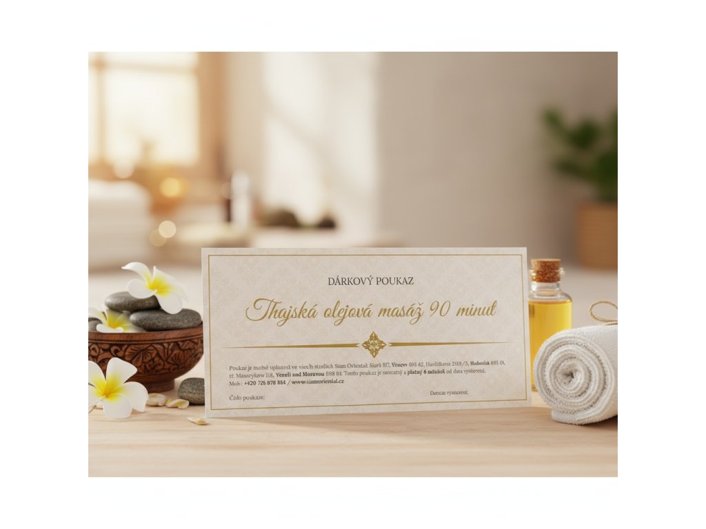 Dárkový poukaz Siam Oriental je perfektní volbou pro ty, kteří chtějí darovat luxus, péči a thajskou tradici v dokonalé rovnováze.
