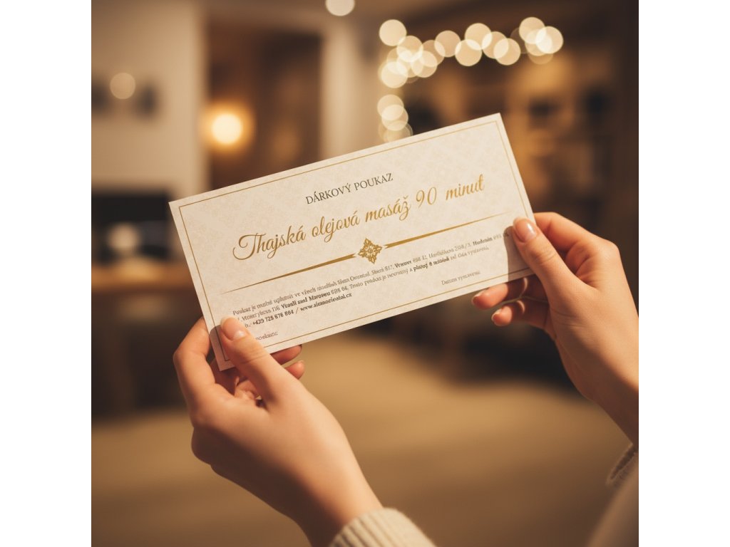 Dárkový poukaz do salonu Siam Oriental je vstupenkou do světa klidu, harmonie a tradiční thajské péče o tělo i duši. Dopřejte svým blízkým luxusní zážitek, na který se nezapomíná.