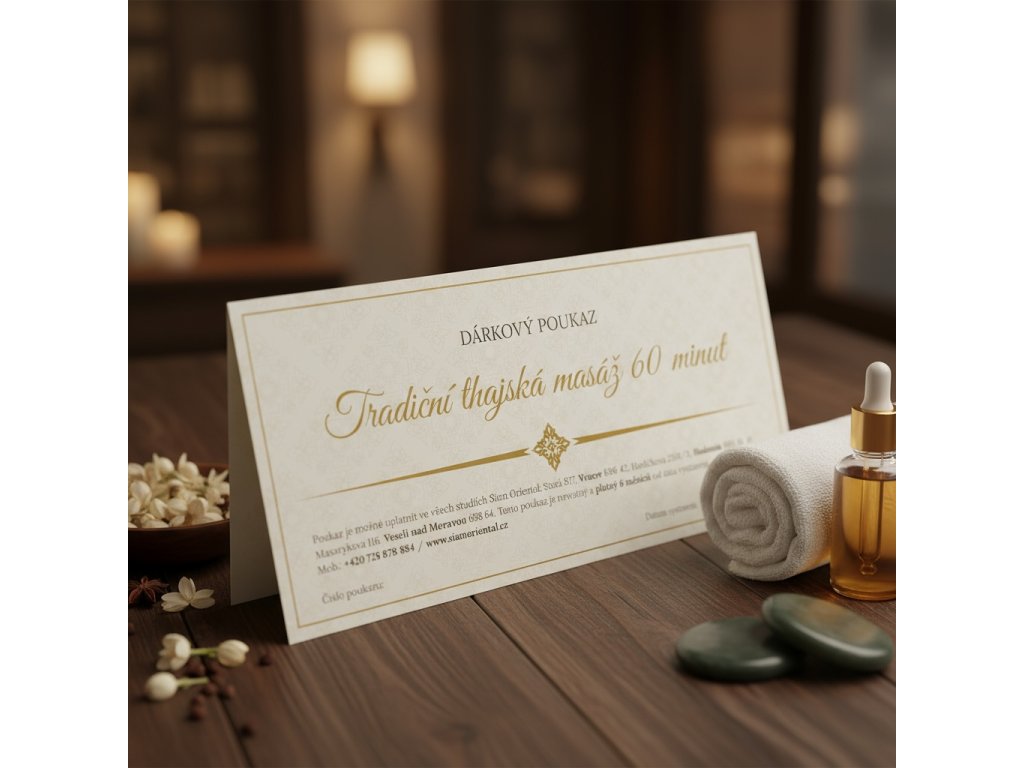 Dárkový poukaz Siam Oriental je perfektní volbou pro ty, kteří chtějí darovat luxus, péči a thajskou tradici v dokonalé rovnováze.
